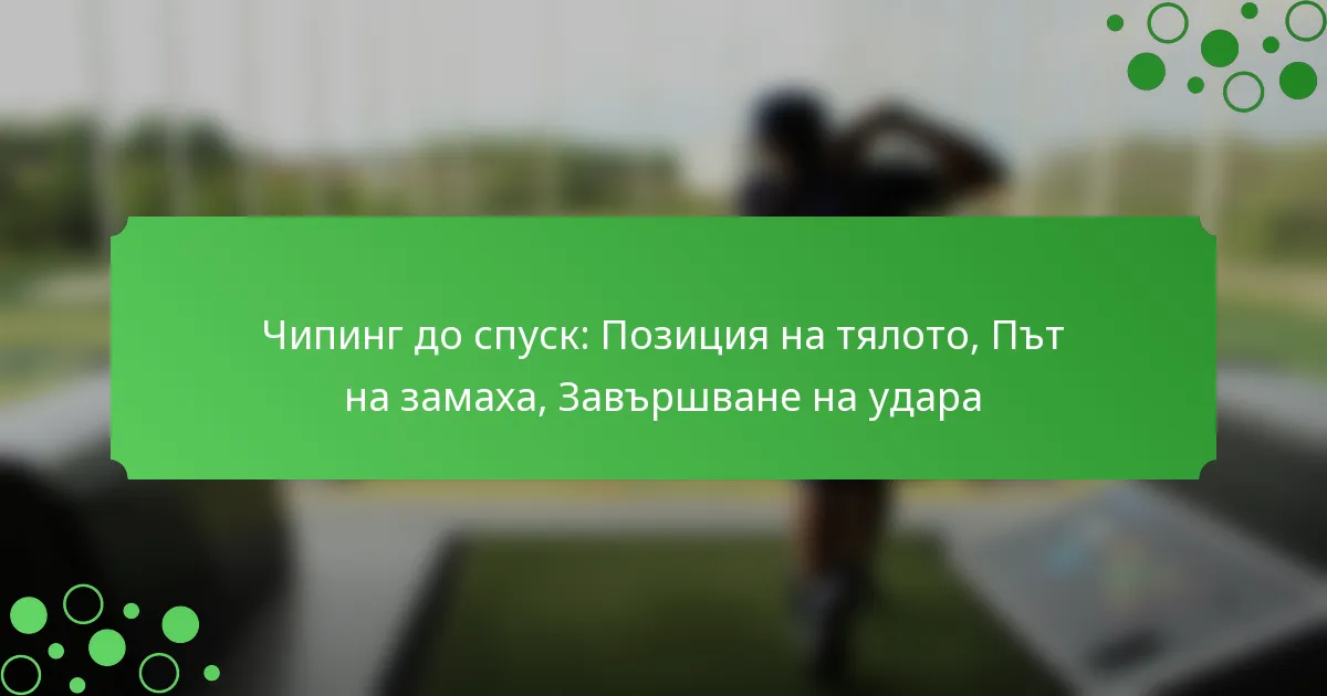 Практикуването на чипинг от наклонени позиции изисква специфични упражнения, които се фокусират върху позицията на тялото, траекторията на замаха и завършването. Тези упражнения помагат на голфърите да развият необходимите умения за изпълнение на точни и последователни чипове от предизвикателни склонове.
