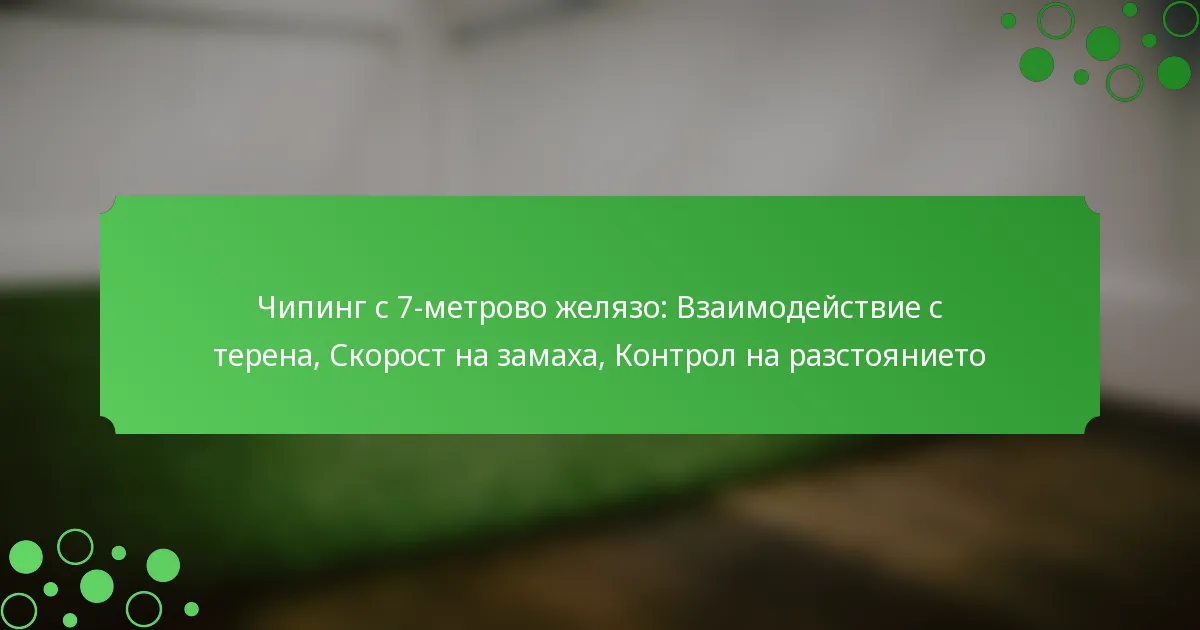 Чипингът с 7-ирон изисква добро разбиране на взаимодействието с терена, скоростта на замаха и контрола на разстоянието. Правилното взаимодействие с терена е от съществено значение за постигане на чист контакт с топката, докато скоростта на замаха влияе както на разстоянието, така и на траекторията на удара. Като овладеете тези елементи, можете да подобрите точността и последователността си около зелените, което ще доведе до подобрена производителност в кратката игра.