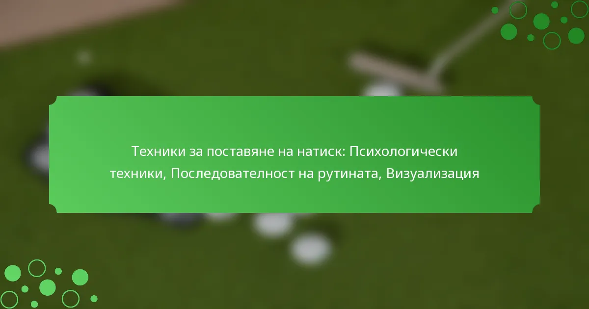 Умствените техники играят решаваща роля в поставянето под натиск, тъй като помагат на голфърите да управляват стреса и да поддържат фокус. Един ефективен метод е умствената репетиция, при която играчите визуализират успешни поставяния в различни ситуации с натиск. Тази практика може да подобри увереността и да намали тревожността по време на реална игра.